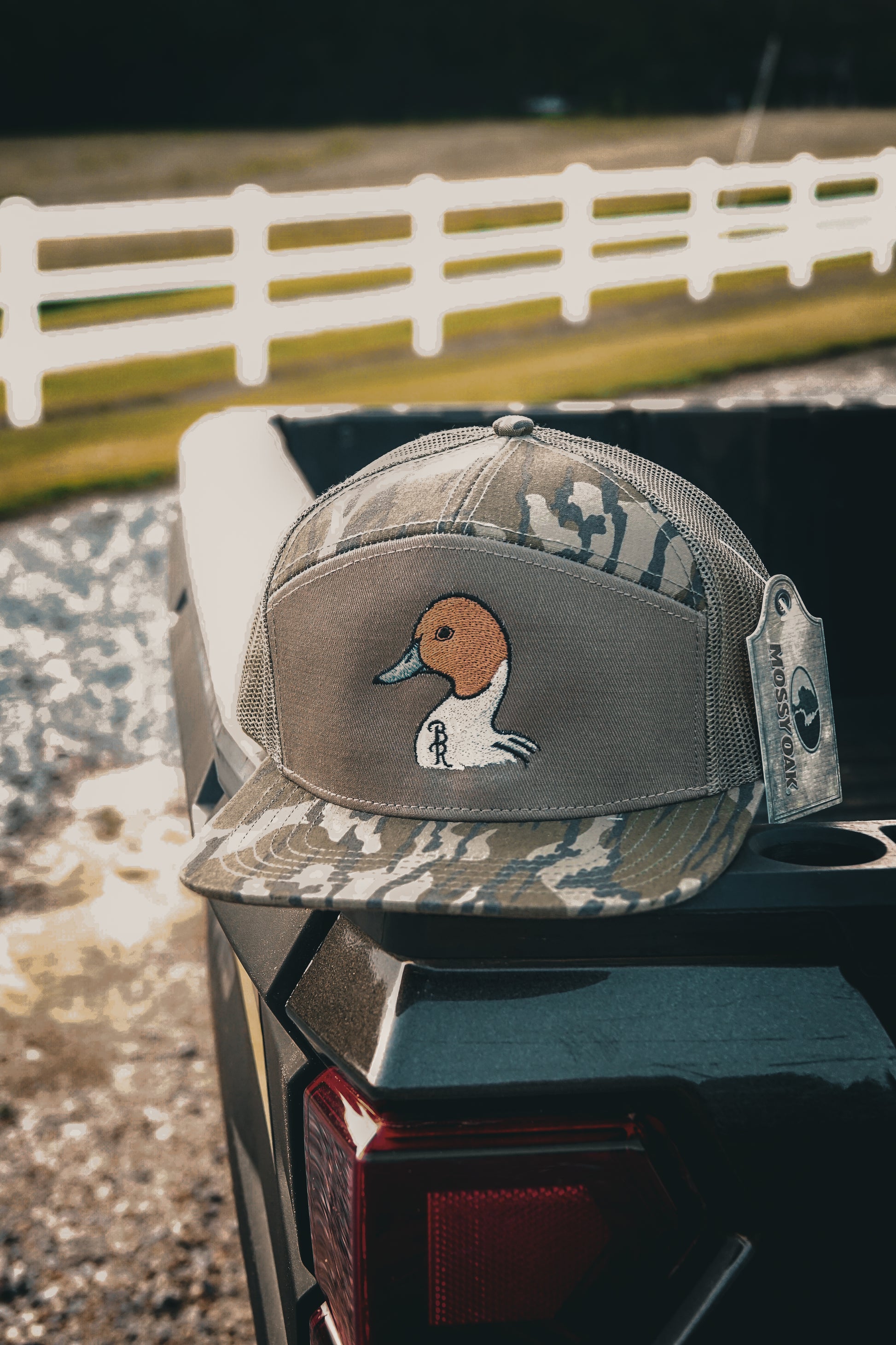 Our Pintail design embroidered on a Bottomland 7 Panel!